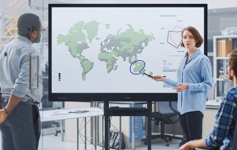 Sumérgete en la experiencia interactiva definitiva con nuestras Pantallas Interactivas Ricoh, diseñadas para transformar la colaboración y la presentación en entornos profesionales. Nuestros valiosos clientes confían en la innovación líder de Ricoh para potenciar reuniones dinámicas, sesiones educativas envolventes y presentaciones cautivadoras. Estas pantallas, con tecnología táctil avanzada, ofrecen una interacción fluida y una calidad de imagen excepcional. Desde salas de juntas hasta aulas, las Pantallas Interactivas Ricoh son la elección perfecta para impulsar la productividad y fomentar la participación. Descubre la próxima generación de colaboración visual con la tecnología que redefine la forma en que compartimos ideas y tomamos decisiones.